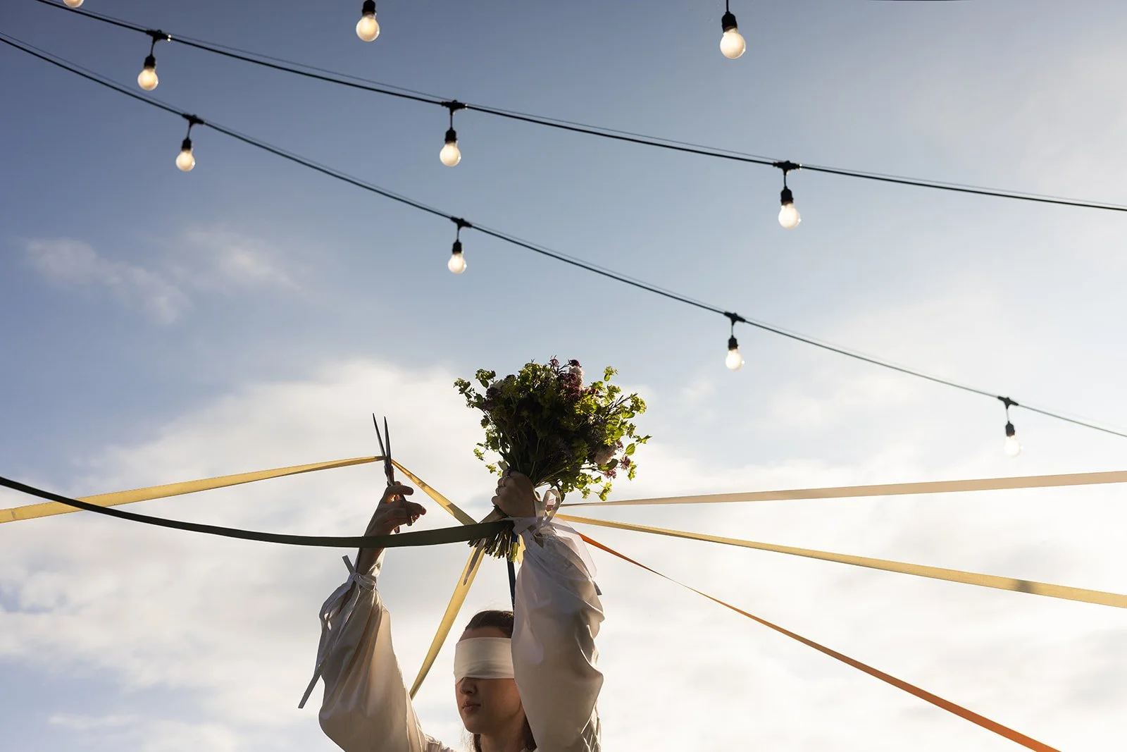 Kdo — šaty Johana Skálová, styling a květiny Veslkomat,MUAH Krasohledna, catering Hlad a žízeň